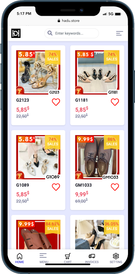 Khi bạn nhắc đến Hadu Store - biểu tượng thời trang giày đình đám tại Cambodia, bạn có biết rằng chúng tôi đã đồng hành cùng họ từ bước đầu tiên? Từ năm 2009, khi tiệm giày đầu tiên của Hadu Store mở cửa, chúng tôi đã tạo nên trang web và app thương mại điện tử độc đáo này. Và không cần phải chờ lâu, chỉ sau vài năm, Hadu Store đã nở rộ khắp các thành phố lớn, trở thành chuỗi giày nhập khẩu từ Việt Nam hàng đầu mà mỗi tín đồ thời trang đều mơ ước.
