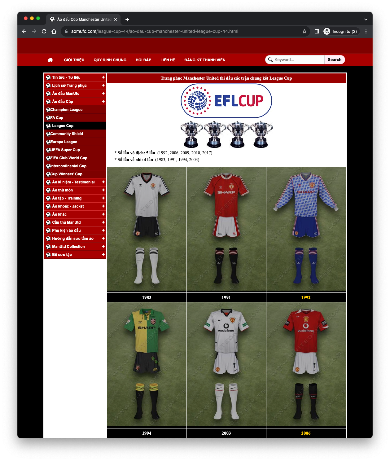 Từ những ngày đầu của năm 2008, trang web này đã trở thành một biểu tượng không thể thiếu cho những người hâm mộ Manchester United chính hiệu. Dù đã trải qua nhiều năm, nhưng sức hút của nó chưa bao giờ giảm sút. Bạn còn nhớ tên miền ban đầu "quydo.com" (Quỷ Đỏ) chứ? Vào năm 2018, chúng tôi đã làm mới mình với tên "aomufc.com".